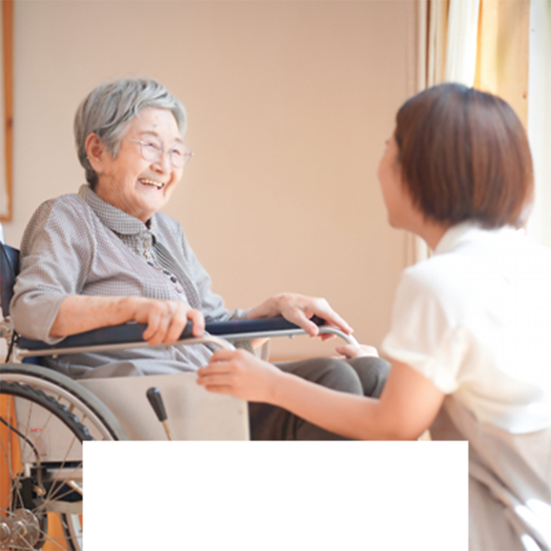 食事・入浴・排せつなど生活全般の介護サービスを提供し、日々変化するご利用者様の状態を専門スタッフ間で共有。適切な健康管理やレクリエーション活動、食事形態の把握・提供、リハビリなどを通じて、老いても楽しく充実した生活をサポートいたします。